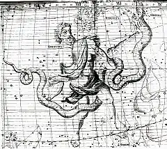 ![]() Carta celeste de la constelación de Ofiuco en la que aparecen sus principales estrellas. | ||
