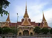 La religión oficial del país es el budismo theravada, que practica el 95 % de los camboyanos. Asimismo, en el país viven grupos minoritarios de vietnamitas, chinos, cham y hasta una treintena de tribus.[8] Su capital y mayor ciudad es Nom Pen, centro cultural, político y económico de la nación. El reino es una monarquía constitucional cuyo jefe de Estado es Norodom Sihamoní, monarca elegido por el Consejo del Trono Real. El primer ministro de Camboya es Hun Manet desde 2023.