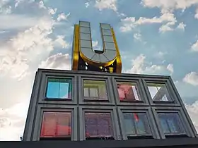 El nombre se deriva del logotipo de la cervecería, que se colocó en la torre principal en 1968 y se restauró por completo en 2008: una "U" de cuatro lados, nueve metros de altura, bañada en oro e iluminada basada en un diseño del arquitecto Ernst Neufert.
