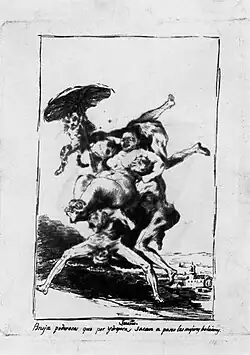- Explicación de esta estampa del manuscrito del Museo del Prado: Madama es hidrópica y la mandan pasear. Dios quiera que se alivie.[2]