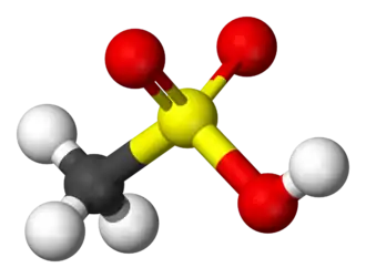 Los ácidos sulfónicos son un grupo ácidos orgánicos de azufre, cuya fórmula general es R-S(=O)2-OH, donde R es generalmente una cadena lateral hidrocarbonada tanto arílica como alquilica que se une al grupo sulfonilo, -SO3H.[1] Sus sales y ésteres con la estructura general R–SO2–O− y R1–SO2–O–R2 se denominan sulfonatos. Los ácidos sulfónicos son generalmente más fuertes que sus bioisósteros carboxílicos y, algunos de ellos, tan fuertes como algunos ácidos inorgánicos, como el ácido sulfúrico o el ácido perclórico.[2]