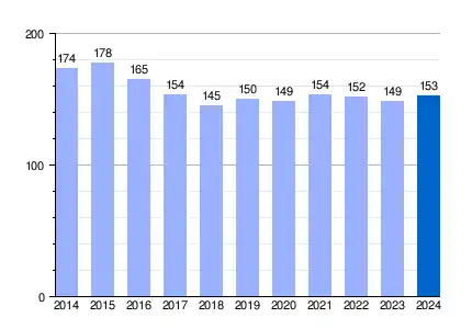 | Gráfica de evolución demográfica de Ácula entre 2014 y 2024 |