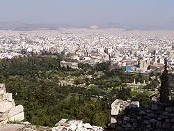 Ágora (del griego ἀγορά,[1] asamblea, de ἀγείρω, ‘reunir’[cita requerida]) es un término por el que se designaba en la Antigua Grecia a la plaza de las ciudades-estado (polis), donde se solían congregar los ciudadanos.
