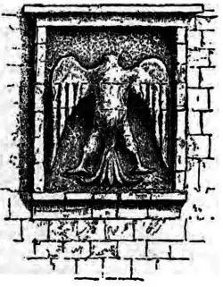 La asociación con Saladino se debe a la representación del águila en el lado oeste del muro de la ciudadela de El Cairo mandada construir por Saladino, aunque el águila en sí es de una fecha más tardía. "El águila de la ciudadela de El Cairo es de fecha incierta, probablemente bastante posterior al periodo de Saladino".[2] El águila aparece sin cabeza y presumiblemente pudo ser una águila bicéfala. La ciudadela de El Cairo no está en su localización original, fue trasladada desde un lugar desconocido en un periodo inconcreto allá por el año 1670 a su lugar actual.[3]
