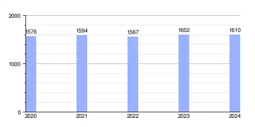 Hasta 2024 la población era de 1610 habitantes,[2] con una densidad de población de 47,17 hab/km².[2]