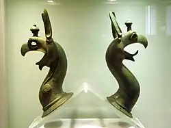 - ↑ Para los grifos como guardianes de tumbas, véase Flagge, Ingeborg (1975). Untersuchungen zur Bedeutung des Greifen (en alemán). Sankt Augustin: Richarz. ISBN 3-921255-07-4.