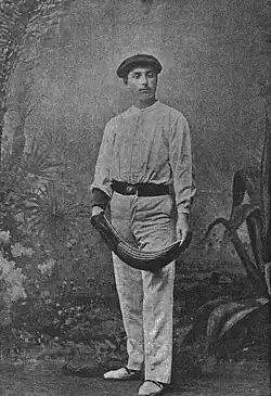 - ↑ «¡El revés! Ante el revés cayeron entonces de hinojos los revisteros y el público, como ante algo fabuloso, que representaba el acabóse de la fuerza y de la habilidad en el juego de pelota. El revés de bote era ya mucho. El revés aire fué lo inverosímil, lo fantástico, lo que sacó de quicio al mundo madrileño y dejó á todos los demás juegos en secundario lugar», escribía Antonio Peña y Goñi en La pelota y los pelotaris.[7]