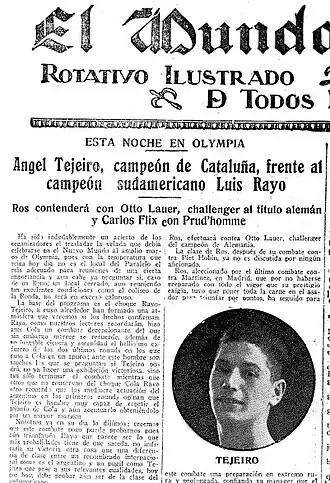 - ↑ Boxeo, número 335, 25 de agosto de 1931, p10
