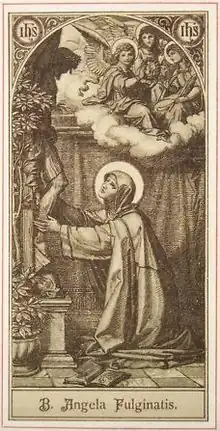 ![]() Grabado que representa a Ángela ante la Pasión de Cristo | |||