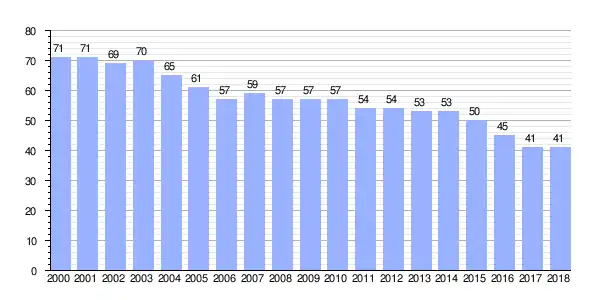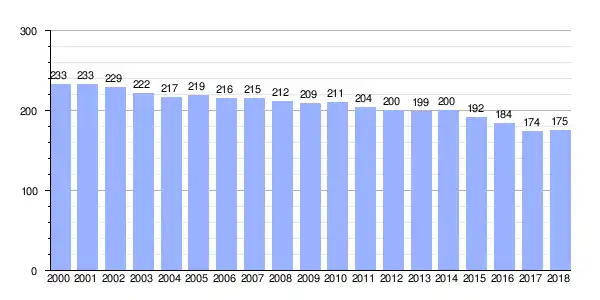 | Gráfica de evolución demográfica de Ángeles (parroquia) entre 2000 y 2018 |
