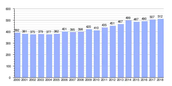 | Gráfica de evolución demográfica de Ángeles de Boente[3] entre 2000 y 2018 |