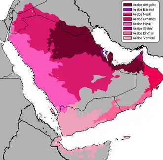 Entre las variedades en las que se suele dividir el árabe peninsular están: