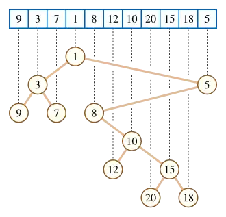 - Construir el árbol cartesiano a partir de la secuencia de entrada.