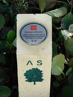 La Comunidad de Madrid publicó en 2015 el último listado actualizado de árboles singulares, "por ser ejemplares arbóreos con características extraordinarias de rareza, excelencia de porte, edad, tamaño, significación histórica, cultural o científica, que constituyen un patrimonio merecedor de una especial atención y protección por parte de la Administración".[1] Están identificados mediante hitos de hormigón o carteles informativos.[2]
