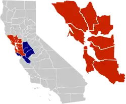 Esta zona agrupa grandes ciudades, tales como San José, San Francisco y Oakland, y también zonas urbanas y rurales más pequeñas. En su totalidad, el Área de la Bahía consta de nueve condados, 101 ciudades y 26,390 km².[1] Los condados son: Alameda, Contra Costa, Marin, Napa, San Francisco, San Mateo, Santa Clara, Solano y Sonoma.[1]