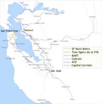 - Caltrain - Un tren suburbano que conecta San José con San Francisco, y con el sistema de BART.