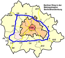 El área metropolitana de Berlín se compone de las ciudades de Berlín y Potsdam y de 31 ciudades pequeñas y municipios ubicados a sus alrededores (entre las que destacan las ciudades de Oraniemburgo, Falkensee y Bernau), como se muestra en la tabla siguiente.
