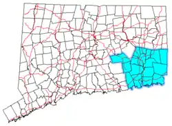 El Área de mercado laboral de New London o área de comutado, abarca 20 pueblos y ciudades del condado de New London: