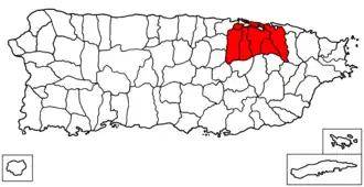 ![]() Mapa de Puerto Rico destacando el área metropolitana de San Juan-Caguas-Guaynabo (MSA) | ||