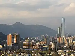Santiago se encuentra a una altitud media de 567 m s. n. m.[8] En 2002, la conurbación se extendía sobre 867,75 km² y tenía una población de 5 428 590 habitantes,[9] lo que equivalía a cerca del 35,9 % de la población total del país. De acuerdo con dichas cifras, Santiago es la quinta área metropolitana más poblada de Hispanoamérica, también la séptima ciudad más habitada de América Latina y según algunas estimaciones, una de las 50 aglomeraciones urbanas más pobladas del mundo.[10]