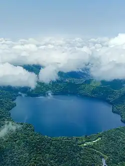 - Lago del cráter Barombi Mbo, sitio Ramsar 1643, 04°40′N 09°23′E, 415 ha. Al sudoeste, en la ecorregión de los lagos de cráter del Occidente Ecuatorial, que incluye lagos como Barombi Mbo, Bermin, Dissoni (Soden), Ejagham, Kotto y Mboandong, entre muchos otros. El mayor es Marombi Mbo, que forma parte de un conjunto de tres lagos en la llamada ecorregión de los lagos de cráter del Camerún afrotropical (Afrotropical Cameroon Crater Lakes Ecoregion), uno de los lugares con mayor número de especies endémicas del mundo, entre ellas 12 peces. Marombi Mbo está situado a 300 m de altitud, y tiene una superficie de 5 km2, con una profundidad media de 69 m y una máxima de 111 m. La lava fluyó por última vez hace 1 millón de años.[55] Al sur, se encuentra el lago Barombi Kotto, de 3 km2, y al norte el lago Dissoni, de 3,6 km2. En el lago Barombi Mbo hay una especie endémica de esponja de agua dulce, Corvospongilla thysi.[56] El lago es un lugar sagrado para la etnia barombi,[57] que usa los recursos del lago con la pesca y practica la agricultura en su entorno, amenazado por la sobrepesca, la introducción de especies foráneas, el uso de pesticidas en las plantaciones de cacao y la deforestación.[58]