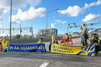 - ↑ «Det här är ”Återställ våtmarker” – organisationen som stormar scener och stoppar trafiken». www.aftonbladet.se (en sueco). 31 de mayo de 2023. Consultado el 1 de junio de 2024.