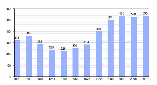 Los datos demográficos contemplados en este gráfico de la comuna de Écardenville-sur-Eure[4] se han cogido de 1800 a 1999 de la página francesa EHESS/Cassini, y los demás datos de la página del INSEE.[5]