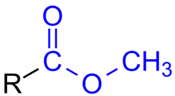 Los ésteres metílicos son compuestos químicos que pertenecen al grupo de los ésteres. Se forman por esterificación de un ácido carboxílico o un oxoácido inorgánico con metanol y tienen el grupo éster funcional característico. Además de los ésteres de ácido carboxílico, los ésteres metílicos también incluyen ésteres de ácido carbónico y ésteres derivados de ácidos sulfónicos y metanol. De forma análoga, los ésteres metílicos también pueden formarse a partir de ácido nítrico, ácidos sulfínicos, ácidos fosfónicos o ácidos fosfínicos por un lado y metanol por otro.[1]