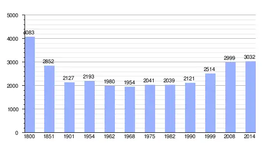 Los datos demográficos contemplados en este gráfico de la comuna de Étables-sur-Mer[3] se han cogido de 1800 a 1999 de la página francesa EHESS/Cassini, y los demás datos de la página del INSEE.[4]
