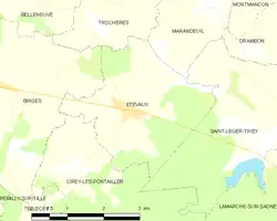 Étevaux es una población y comuna francesa, en la región de Borgoña, departamento de Côte-d'Or, en el distrito de Dijon y cantón de Pontailler-sur-Saône.