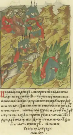 Alarmados por la audacia de los príncipes, que les habían atacado en sus propias tierras, los cumanos del Donets llamaron a la alarma general. Por tres días, los arqueros enemigos les lanzaron flechas sin presentar batalla. La única esperanza de los príncipes rusos era alcanzar el río Donets, pero si huían, debían abandonar a los soldados comunes, por lo que cabalgaron contra el enemigo. El ataque finalizó en una catástrofe. Los cumanos rodearon a las fuerzas de Ígor, de tal modo que solo lograrían escapar quince hombres. Ígor, herido, fue capturado por un cumano llamado Chilbuk, pero Konchak lo puso bajo su protección, en consideración por ser su svat (padre de su yerno).