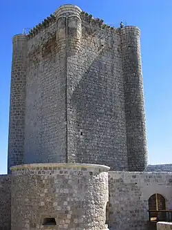 Su interior, de diferentes plantas, con pasajes descubiertos con las obras de restauración que se llevan a cabo actualmente. El piso inferior se cubre con bóveda nervada, cuya clave descansa sobre un grueso pilar.