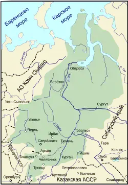 El 8 de agosto de 1930 fueron abolidos los ókrugs. El 10 de diciembre de 1930 en la parte norte del antiguo ókrug de Tobolsky fueron creados los ókrugs nacionales de Ostiako-Vogul y Yamalia. El 17 de enero de 1934 fue abolido el óblast y en su lugar se crearon los de Sverdlovsk, Cheliábinsk y Obi-Irtish. Al final de 1933, el área del óblast era de 1,896,000 km².