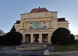 Debido a los problemas financieros de la obra, los planes arquitectónicos de Fellner y Helmer no pudieron llevarse a cabo en la forma prevista. Contrariamente a la planificación original del edificio, no es una sala de conciertos junto a un teatro.