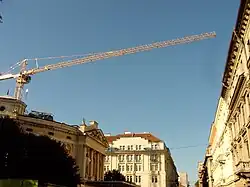 Después de la Segunda Guerra Mundial quitaron del edificio, por razones políticas, la escultura sobre el saliente central porque, para algunos, representaba figuras de ángeles. En el año 1982 fue reinstalada.