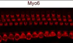 Las células laterales (outer hair cells OHD) están organizadas en tres filas, a lo largo de toda la cóclea.[8] [9]