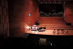 Luego del terremoto de San Juan de 1944 que destruyó la mayor parte de la ciudad, se conformó el Consejo Nacional de Construcciones Antisísmicas y de Reconstrucción de San Juan siendo precedida por Juan Victoria, quién militaba en la Unión Cívica Radical Intransigente y al ser ingeniero en petróleo, tenía estrechos vínculos con el presidente Arturo Frondizi.[7] El consejo tenía como objetivo reconstruir la ciudad, pero no contemplaba la construcción de edificaciones culturales, por ello Victoria le solicitó al presidente Frondizi un presupuesto extra para el auditorio.[8] El presidente agregó también al presupuesto un monto de 28 millones de pesos para comprar el órgano de tubos del auditorio, y más de 500 millones de pesos para el Auditorio y la Escuela Superior de Música. Existió controversia por los gastos del auditorio en si, ya que muchas personas aún vivían en casillas de madera. Pese a las críticas de la oposición liderada por la Unión Cívica Radical del Pueblo, el proyecto se concretó. La ley que estipulaba el presupuesto y ordenaba su construcción fue sancionada con éxito en 1959,[7] mientras que el llamado a licitación fue en 1962,[9] y el auditorio se finalizó recién en 1970 y se terminó por bautizar como Auditorio Juan Victoria.[7] El proyecto del Auditorio y de la Escuela Superior de Música fue planificado y realizado por Federico Malvárez y Mario Para Baldi, además fue supervisado por Carmen Renard.[8]