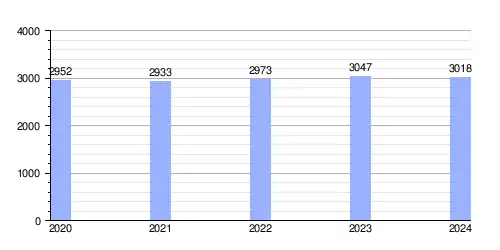 Hasta 2024 la población era de 3018 habitantes,[2] con una densidad de población de 29,30 hab/km².[2]