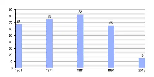 | Gráfica de evolución demográfica de Ćatovići entre 1961 y 2013 |