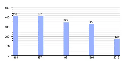 | Gráfica de evolución demográfica de Ćusine entre 1961 y 2013 |