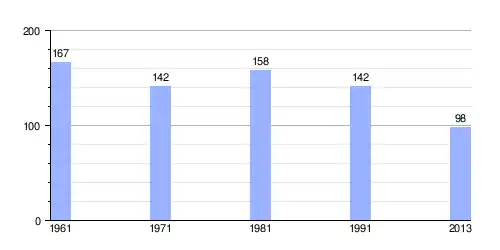 | Gráfica de evolución demográfica de Đakovići entre 1961 y 2013 |