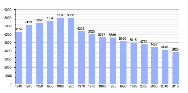 | Gráfica de evolución demográfica de Ōkuwa entre 1940 y 2015 |