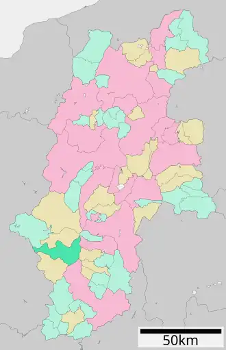 - ↑ «長野県» [Prefectura de Nagano] (PDF). Autoridad de Información Geoespacial de Japón (en japonés). Archivado desde el original el 26 de diciembre de 2019. Consultado el 29 de noviembre de 2019.