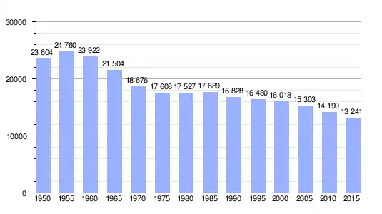 | Gráfica de evolución demográfica de Ōsaki entre 1950 y 2015 |