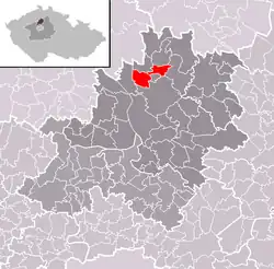 Se encuentra ubicada al norte de la región y de Praga, cerca de la confluencia de los ríos Elba y Moldava, y de la frontera con las regiones de Ústí nad Labem y Liberec.[1]