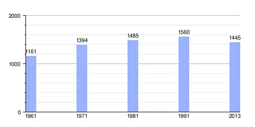 | Gráfica de evolución demográfica de Župča entre 1961 y 2013 |