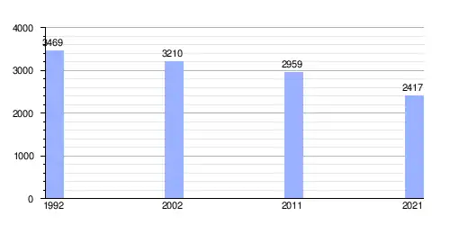 Hasta 2021 la población era de 2417 habitantes,[2] con una densidad de población de 32,14 habitantes por kilómetro cuadrado.[2]