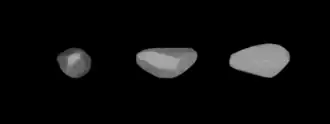 ![]() Modelo tridimensional de Rarahu obtenido a partir de su curva de luz. | ||||||