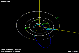 - ↑ a b «(1566) Icarus» (en inglés). Jet Propulsion Laboratory. Consultado el 12 de agosto de 2015.
