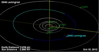 - ↑ a b «(2046) Leningrad» (en inglés). Jet Propulsion Laboratory. Consultado el 21 de agosto de 2015.